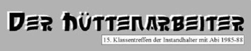 Schulbeginn: 1.9.1985 Abiturball: 15.7.1988 Klassenlehrer: Hr. Okeson Abschluss: Instandhalter mit Abitur Spezialisierung: Technologische Ausrüstung Hütten Urlaub: 24 Tage Lehrlingsentgeld: 130,- bis 200,- Mark |